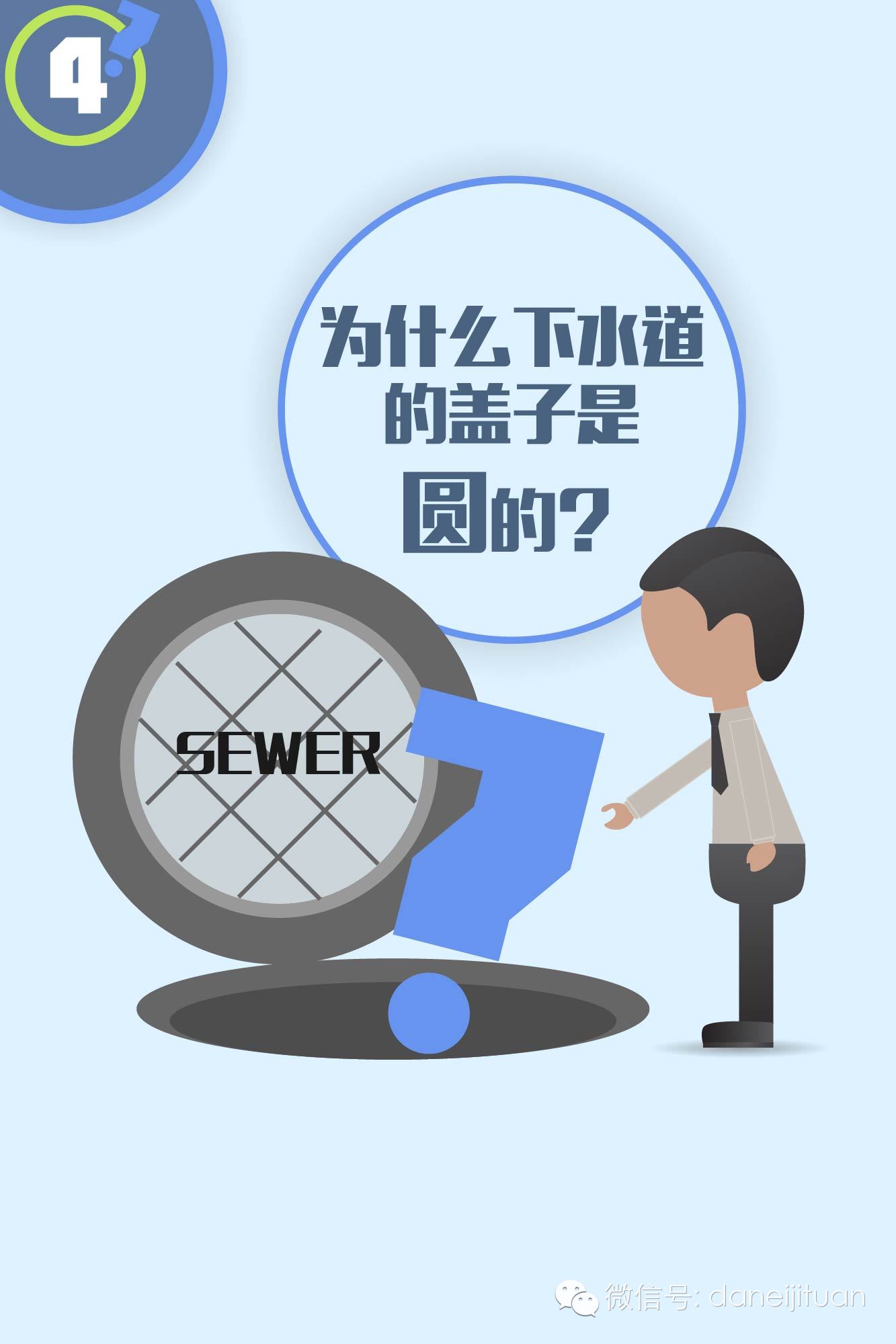 答案之一:从麻省理工大学一位计算机系教授那里听来的答案,首先在同等用材的情况下他的面积最大。第二因为如果是方的、长方的或椭圆的,那无聊之徒拎起来它就可以直接扔进地下道啦!但圆形的盖子嘛,就可以避免这种情况了~你还有其它答案吗?